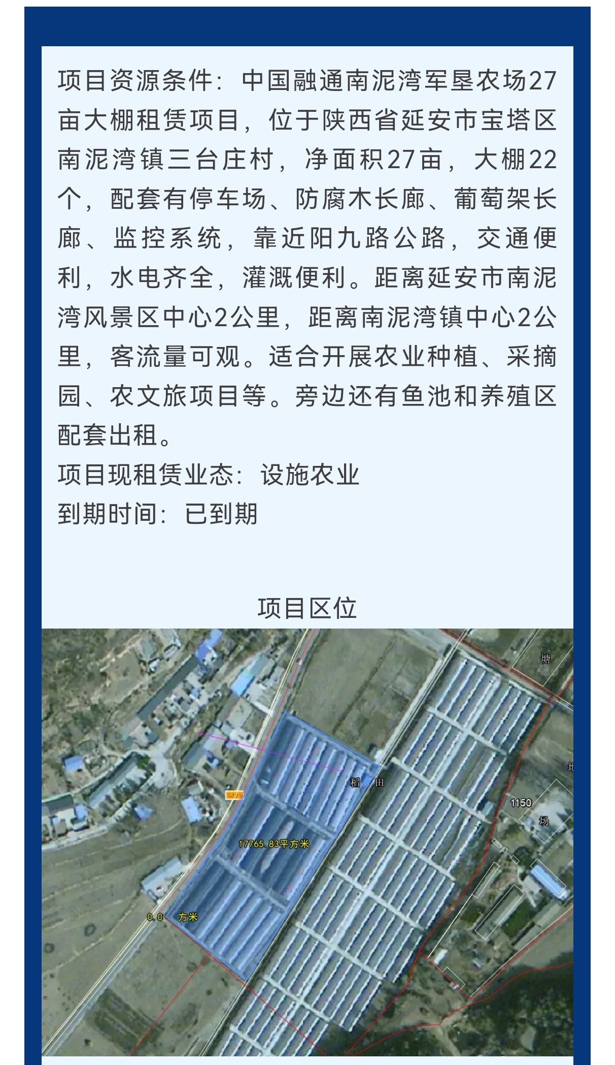 中國融通南泥灣軍墾農(nóng)場大棚招租公告